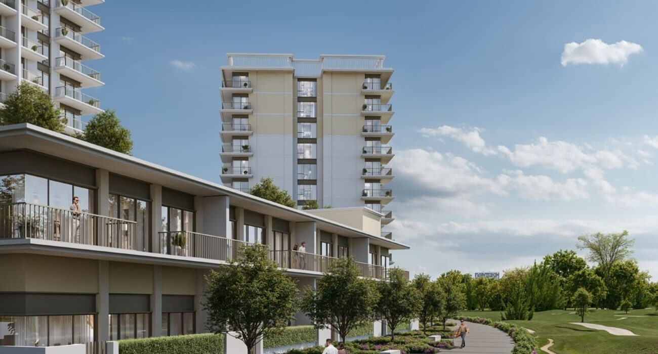 The architectural masterpiece delivers a refined version of contemporary beauty to redefine elegance to rejuvenate. The façade functions as a beautiful architecture ensemble which harmonizes modern design elements with timeless beauty. The exterior combines earth-inspired tones which merge perfectly with the natural environment. The building designs with their straight lines and large balconies with large windows present a powerful yet warm structure that fits perfectly with the course’s green landscape. Every architectural structure achieves environmental harmony through considerate material choices with textural elements thus providing residents with aesthetic functionality.